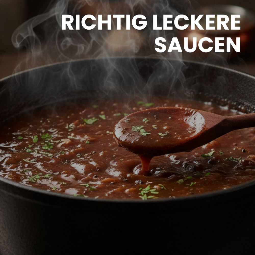 Dunkle Bratensauce, Rotweinsauce, Rinderfonds als Basis, Kalbsjus oder Demi-Glace, Tomatensauce mit Tiefe, Pilzrahmsauce, dunkle Zwiebelsauce
